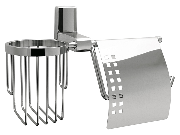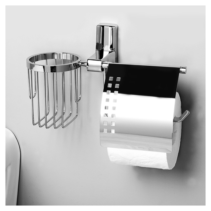 Держатель Wasserkraft Leine K-5059 предназначен для дозированной подачи рулонной туалетной бумаги и хранения освежителя воздуха в санитарно-гигиенических комнатах. Модель оснащена крышкой. Аксессуары коллекции Leine выполнены в современном стиле и идеально дополнят дизайн любой ванной комнаты. Изделие выполнено из металла. В комплект поставки входят уплотнительные пластиковые кольца. Особенности: