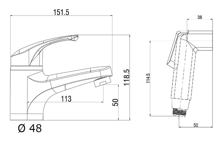 Смеситель для раковины ORANGE OneLife P01-022cr с гигиеническим душем