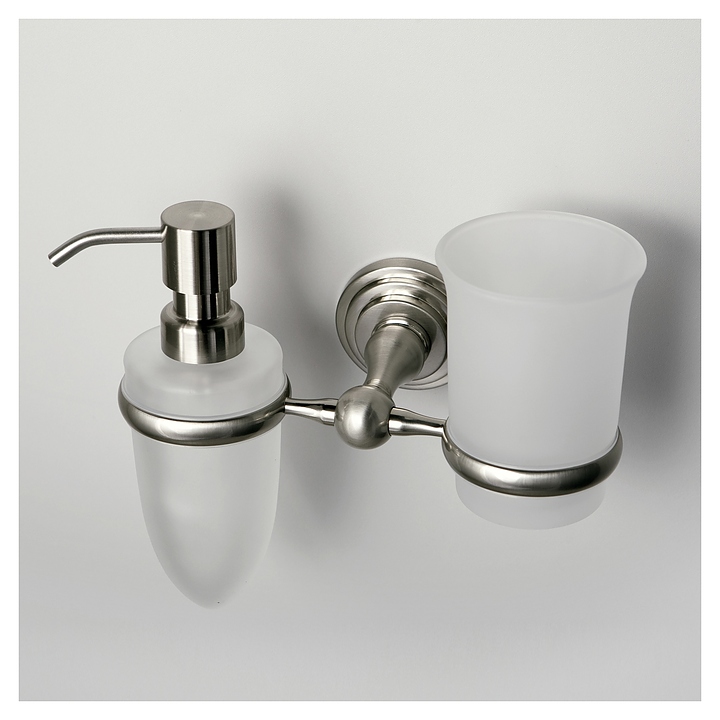 Держатель Wasserkraft Ammer K-7089 предназначен для размещения зубных щеток и дозатора для жидкого мыла в ванной комнате. Аксессуары коллекции Ammer идеально дополнят дизайн любой ванной комнаты. Модель оснащена держателем, стаканом для зубных щеток, дозатором для жидкого мыла, имеет скрытые крепления и монтируется на стену. Изделие выполнено из металла и матового стекла. В комплект поставки входят стакан, дозатор, держатель и уплотнительные пластиковые кольца. Особенности: