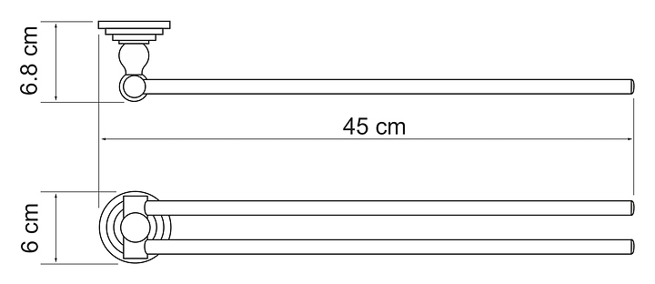 Полотенцедержатель двойной Wasserkraft Ammer K-7031 используется в ванных комнатах для размещения тканных полотенец. Аксессуары серии Ammer идеально дополнят интерьер любой ванной комнаты. Модель оснащена 2 поворотными перекладинами, имеет скрытые крепления и монтируется на стену. Изделие выполнено из металла. В комплект поставки входят уплотнительные пластиковые кольца. Особенности: