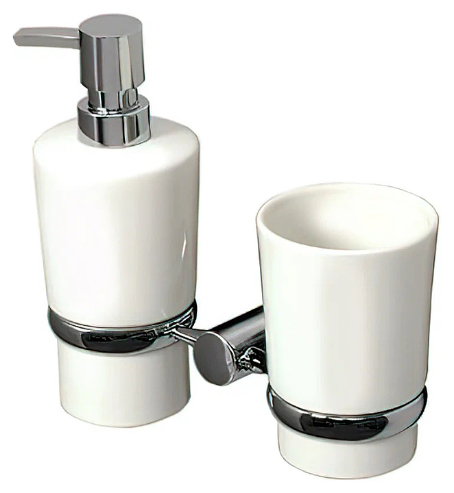 Двойной держатель Wasserkraft K-28289 предназначен для размещения зубных щеток и мыльницы в ванной комнате. Аксессуары коллекции идеально дополнят дизайн любой ванной комнаты. Модель оснащена держателем, стаканом для зубных щеток и дозатором для жидкого мыла, имеет скрытые крепления и монтируется на стену. Изделие выполнено из металла и фарфора. Комплектация: