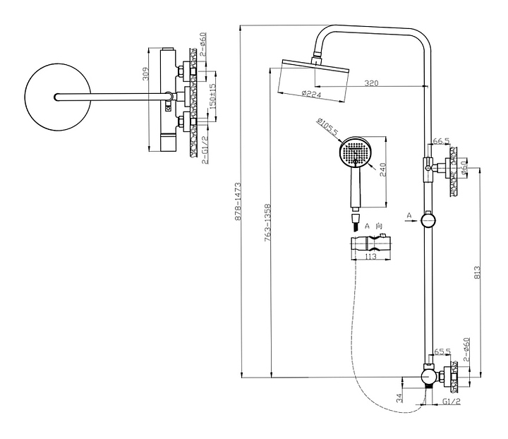 Стойка душевая Bronze de Luxe Focus 24612BG