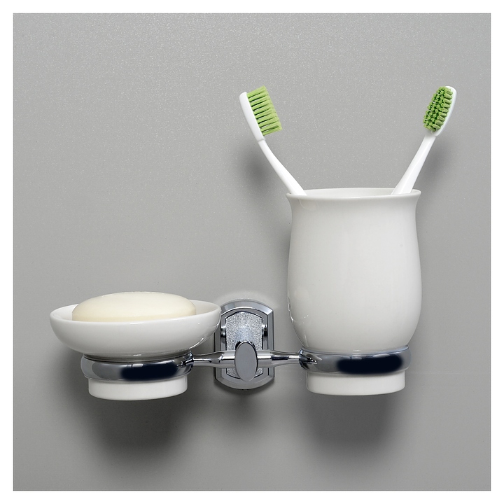 Двойной держатель Wasserkraft K-24126 предназначен для размещения зубных щеток и мыльницы в ванной комнате. Аксессуары коллекции идеально дополнят дизайн любой ванной комнаты. Модель оснащена держателем, стаканом для зубных щеток и мыльницей, имеет скрытые крепления и монтируется на стену. Изделие выполнено из металла и фарфора. Комплектация: