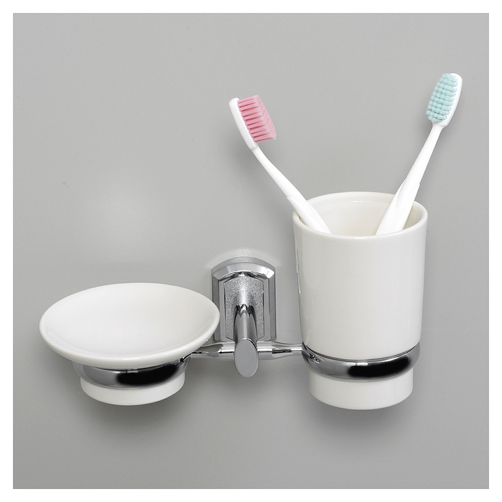 Двойной держатель Wasserkraft K-28126 предназначен для размещения зубных щеток и мыльницы в ванной комнате. Аксессуары коллекции идеально дополнят дизайн любой ванной комнаты. Модель оснащена держателем, стаканом для зубных щеток и мыльницей, имеет скрытые крепления и монтируется на стену. Изделие выполнено из металла и фарфора. Комплектация: