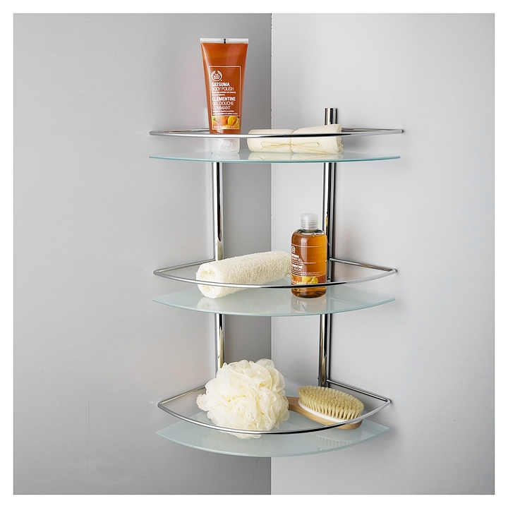 Полка стеклянная тройная угловая с бортиком Wasserkraft K-3133 хром