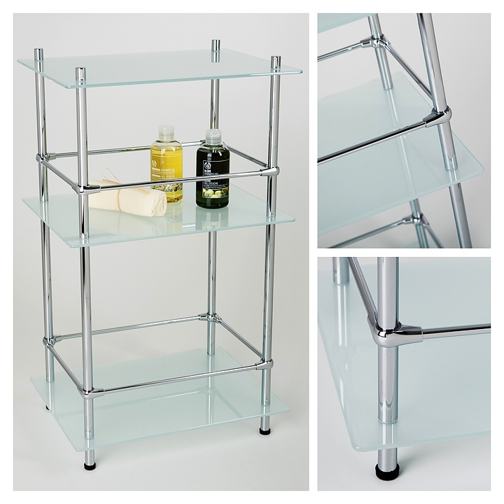 Напольная стеклянная полка Wasserkraft K-4033 используется в ванных комнатах для размещения банных принадлежностей и аксессуаров. Аксессуры серии идеально дополнят интерьер любой ванной комнаты. Модель оснащена тремя уровнями полок, две из которых с бортиком. Изделие выполнено из металла и закаленного прозрачного стекла. Особенности: