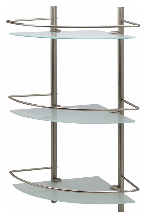 Полка стеклянная тройная угловая с бортиком Wasserkraft K-3733 никель