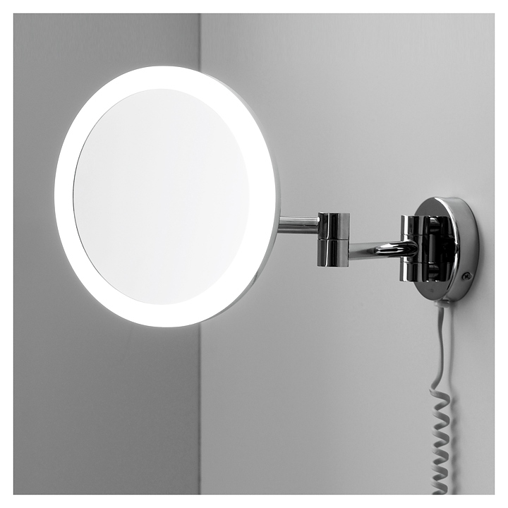 Зеркало косметическое настенное Wasserkraft K-1004 с LED-подсветкой и 3-х кратным увеличением, хром