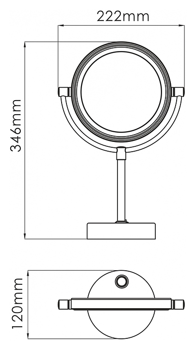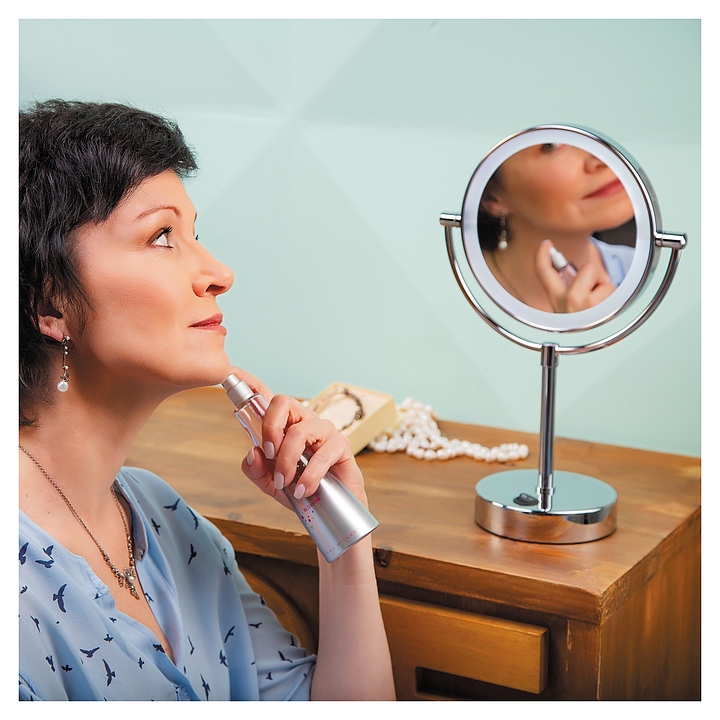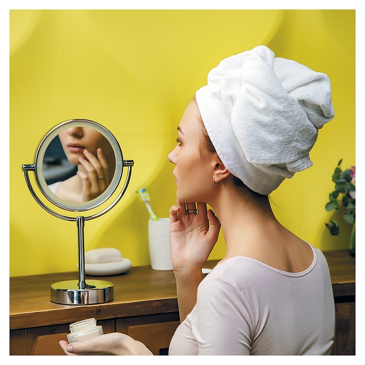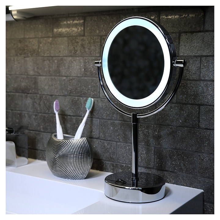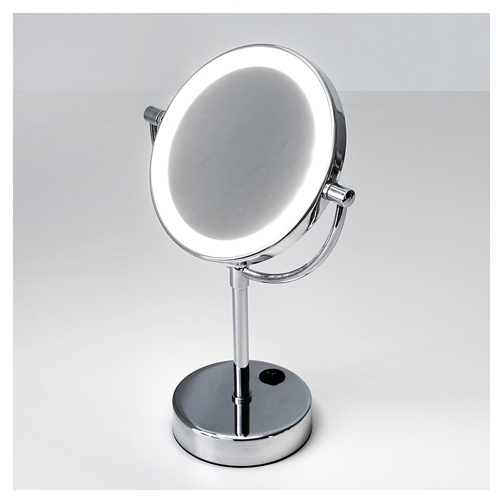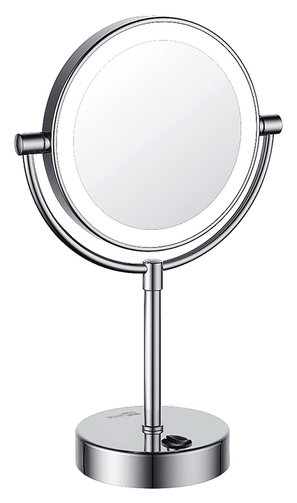 Зеркало косметическое Wasserkraft K-1005 с LED-подсветкой, 3-х кратным увеличением, двустороннее, хром