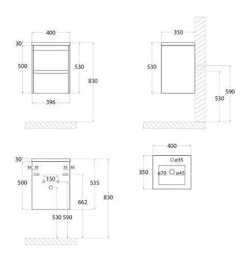 Тумба под раковину Art&Max Family-M-400-2C-SO-HC выполнена в современном стиле и прекрасно впишется в интерьер любой ванной комнаты. Благодаря подвесной конструкции модель не занимает много места и облегчает уборку. Модель оснащена 2 выкатными ящиками с доводчиками скрытого монтажа и системой плавного закрывания. Фасад выполнен из ЛДСП. Тумба используется с раковиной AM-LAV-400-MR-A. Раковина и смеситель в комплект поставки не входят. Дополнительные характеристики: