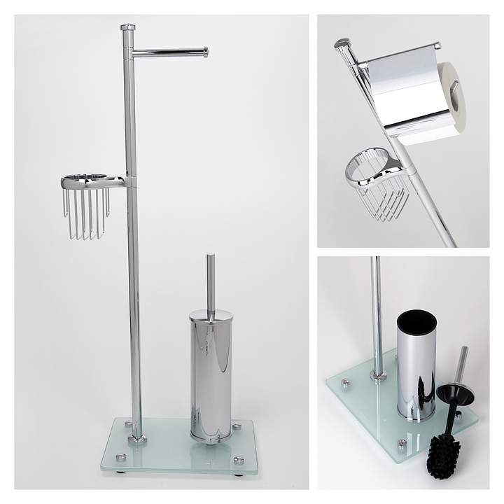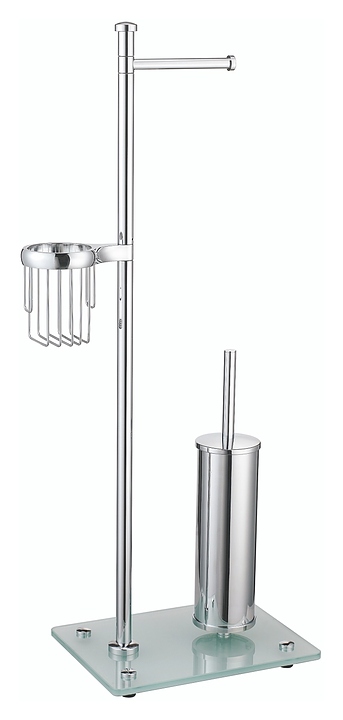 Стойка Wasserkraft K-1264 предназначена для использования в ванных комнатах. Аксессуары этой коллекции идеально дополнят дизайн любой ванной комнаты. Модель оснащена держателем для туалетной бумаги с крышкой и без крышки, ершиком для унитаза и держателем для освежителя воздуха. Изделие выполнено из металла и закаленного матового стекла. В комплект поставки входят стойка, ершик для туалета, колба для ершика, держатель для освежителя воздуха, держатель туалетной бумаги (в комплекте с крышкой и без крышки) и уплотнительные пластиковые кольца. Особенности: