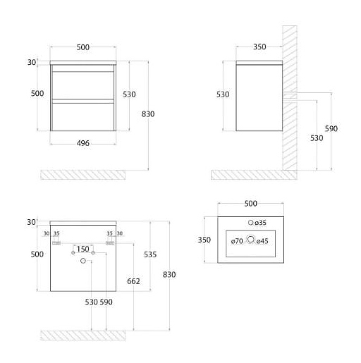 Тумба под раковину Art&Max Family-M-500-2C-SO-IS выполнена в современном стиле и прекрасно впишется в интерьер любой ванной комнаты. Благодаря подвесной конструкции модель не занимает много места и облегчает уборку. Модель оснащена 2 выкатными ящиками с доводчиками скрытого монтажа и системой плавного закрывания. Фасад выполнен из ЛДСП. Тумба используется с раковиной AM-LAV-500-MR-A. Раковина и смеситель в комплект поставки не входят. Дополнительные характеристики: