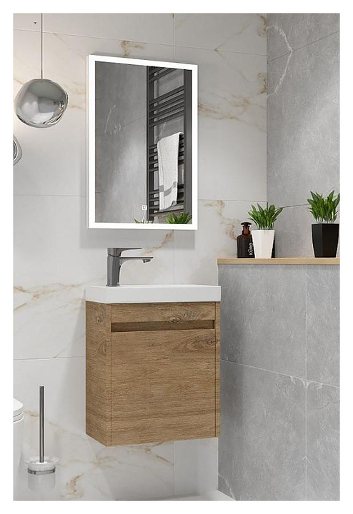 Тумба под раковину Art&Max Family-M-500-1D-SO-HG выполнена в современном стиле и прекрасно впишется в интерьер любой ванной комнаты. Благодаря подвесной конструкции модель не занимает много места и облегчает уборку. Модель оснащена распашной дверцей с доводчиками скрытого монтажа с системой плавного закрывания. Фасад выполнен из ЛДСП. Тумба используется с раковиной AM-LAV-500-MR-Mini. Раковина и смеситель в комплект поставки не входят. Дополнительные характеристики: