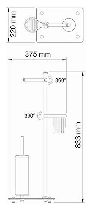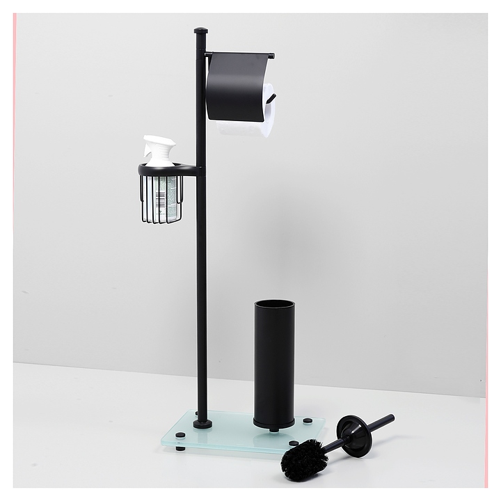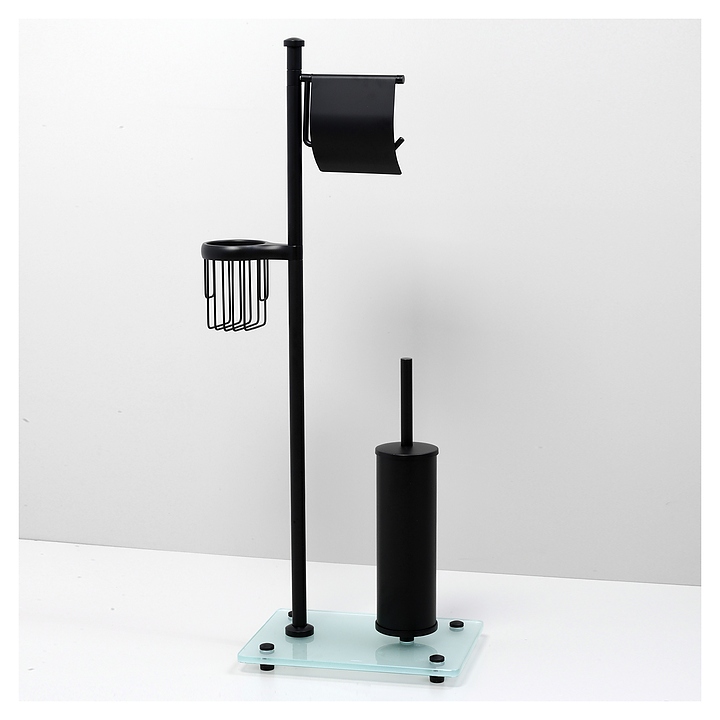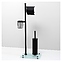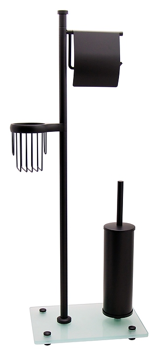 Стойка Wasserkraft K-1264BLACK предназначена для использования в ванных комнатах. Аксессуары этой коллекции идеально дополнят дизайн любой ванной комнаты. Модель оснащена держателем для туалетной бумаги с крышкой и без крышки, ершиком для унитаза и держателем для освежителя воздуха. Изделие выполнено из металла и закаленного матового стекла. В комплект поставки входят стойка, ершик для туалета, колба для ершика, держатель для освежителя воздуха, держатель туалетной бумаги с крышкой и без крышки, и уплотнительные пластиковые кольца. Особенности: