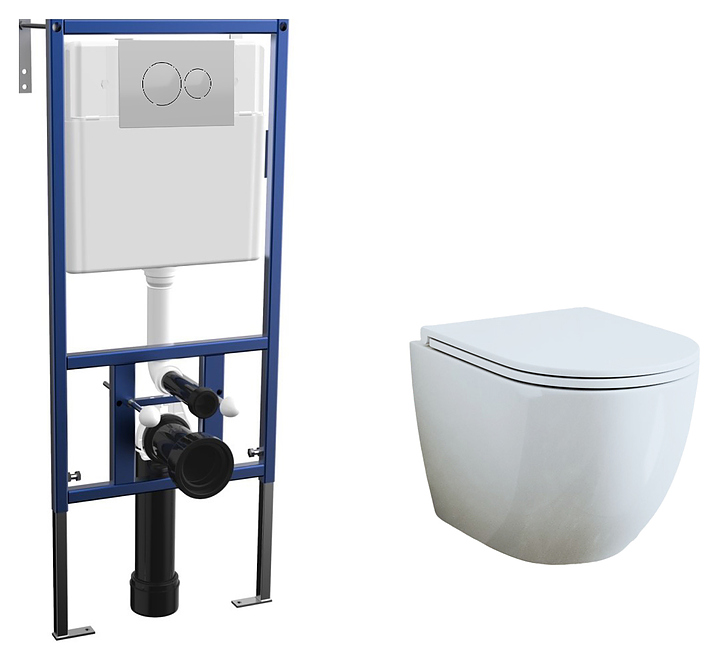 Унитаз подвесной с инсталляцией и кнопкой Bauedge Торнадо BL0001-HQ+NV4501+NV7311