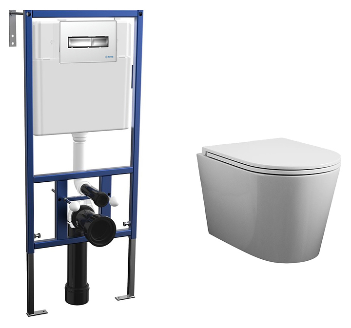 Унитаз подвесной с инсталляцией и кнопкой Bauedge Nimb BK0001-HQ+NV4501+NV7322