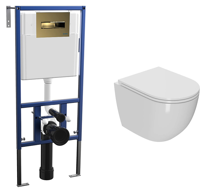 Унитаз подвесной с инсталляцией и кнопкой Bauedge Dream BL0001-HQ2+NV4501+NV7325