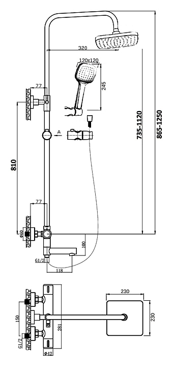 Душевая система ORANGE T02S4-911b предназначена для использования в ванных помещениях для подачи горячей и холодной воды. Модель оснащена квадратным верхним тропическим душем с регулируемым углом наклона, телескопической штангой, регулируемым держаталем для ручного душа, квадратной ручной лейкой с системой защиты от известковых отложений и душевым шлангом с защитой от перекручивания в металлической оплетке, поворотным изливом с аэратором для создания мягкой ровной струи без разбрызгивания, а также термостатическим картриджем, обеспечивающим поддержание необходимой температуры в независимости от давления воды. Изделие выполнено из высококачественной латуни, отличающейся прочностью, долговечностью и устойчивостью к перепадам температур, ABS-пластика и нержавеющей стали. В комплект поставки входят верхний душ, шланг для душа, термостат с изливом, душевая лейка, душевая штанга, держатель лейки, держатель штанги и эксцентрики. Особенности: