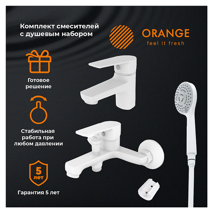 Комплект смесителей с душевым гарнитуром ORANGE Loop M26-311w белый