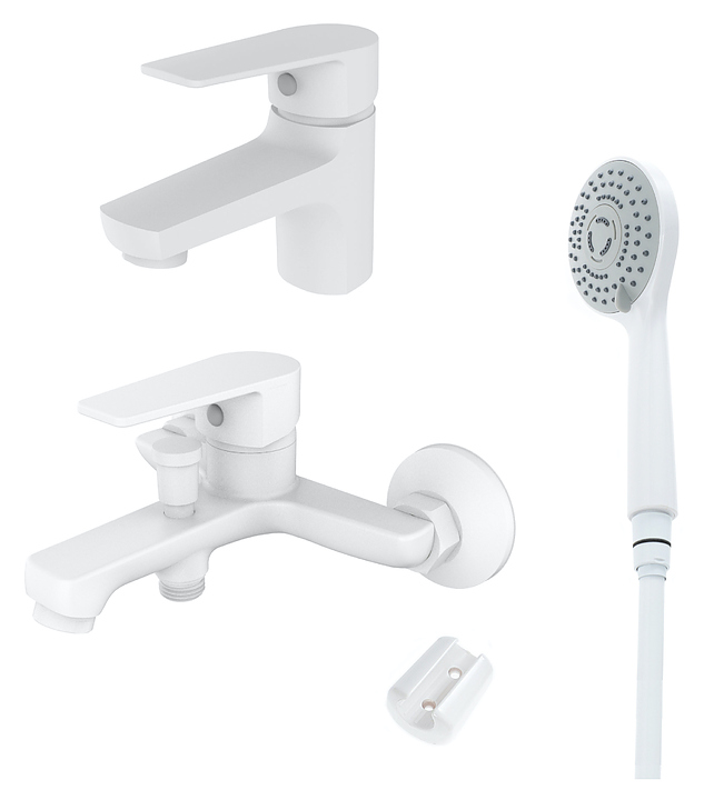 Набор ORANGE Loop M26-311w предназначен для использования в ванных комнатах. Модель оснащена смесителем для раковины и ванны с душем, настенным держателем для ручного душа, ручной лейкой и шлангом с защитой от перекручивания, а также керамическим картриджем, обеспечивающим плавный ход рычага смесителя, контроль и точность при выборе напора и температуры воды, и аэратором для создания мягкой ровной струи без разбрызгивания. Изделие выполнено из латуни, отличающейся прочностью, долговечностью и устойчивостью к перепадам температуры и ABS-пластика. В комплект поставки входят смеситель для раковины, смеситель для ванны с душем, держатель для ручного душа, ручная лейка, шланг, крепления и гибкая подводка. Особенности: