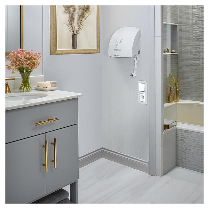 Сушилка для рук MEYVEL MH1-1800P1 используется в гостиницах, отелях, бассейнах, фитнес-клубах и спа-центрах с высокой проходимостью. Прибор оснащен системой автоматического включения и выключения. Корпус выполнен из ABS-пластика белого цвета. Особенности:
