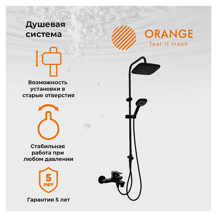 Душевая система ORANGE Aristo M19-944b предназначена для использования в ванных помещениях для подачи горячей и холодной воды. Модель оснащена смесителем для ванны, квадратным верхним тропическим душем с силиконовыми наконечниками для простого удаления известкового налёта, штангой, регулируемым держателем для ручного душа, квадратной ручной лейкой с системой защиты от известковых отложений и душевым шлангом в металлической оплётке с защитой от перекручивания. Керамический картридж обеспечивает плавный ход рычага смесителя, контроль и точность при выборе напора и температуры воды, а аэратор создает мягкую ровную струю без разбрызгивания. Изделие выполнено из латуни, отличающейся прочностью, долговечностью и устойчивостью к перепадам температур. Особенности: