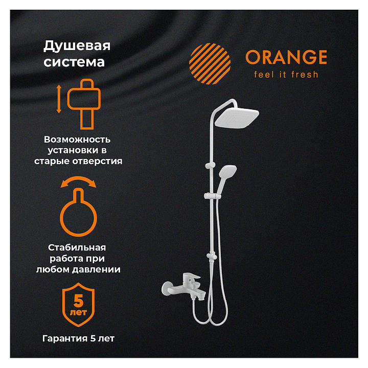 Душевая система ORANGE Aristo M19-944w предназначена для использования в ванных помещениях для подачи горячей и холодной воды. Модель оснащена смесителем для ванны, квадратным верхним тропическим душем с силиконовыми наконечниками для простого удаления известкового налёта, штангой, регулируемым держателем для ручного душа, квадратной ручной лейкой с системой защиты от известковых отложений и душевым шлангом в металлической оплётке с защитой от перекручивания. Керамический картридж обеспечивает плавный ход рычага смесителя, контроль и точность при выборе напора и температуры воды, а аэратор создает мягкую ровную струю без разбрызгивания. Изделие выполнено из латуни, отличающейся прочностью, долговечностью и устойчивостью к перепадам температур. Особенности: