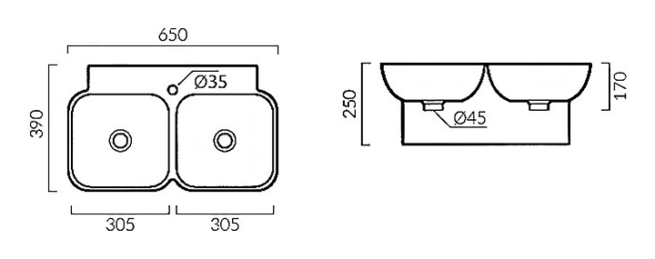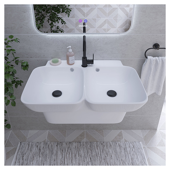 Двойная раковина Grossman GR-3037-2 дополнит интерьер ванной комнаты. Благодаря подвесной конструкции модель экономит место и облегчает уборку. Наличие 2 чаш позволяет использовать раковину сразу двоим людям и обеспечивает большую гигиеничность за счет возможности разграничения зон. Модель оснащена широкой задней поверхностью для размещения смесителя и аксессуаров. Изделие выполнено из стекловидного фарфора, который отличается гладкой поверхностью для легкого и простого очищения. Смеситель и донные клапаны в комплект поставки не входят. Особенности: