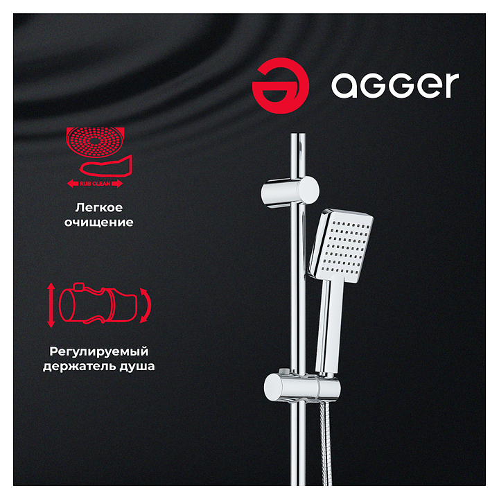 Душевая система ORANGE Agger Fresh A0494000 предназначена для использования в ванных помещениях для подачи горячей и холодной воды. Модель оснащена квадратным верхним тропическим душем с системой самоочистки, штангой, регулируемым держателем для ручного душа, квадратной ручной лейкой с системой защиты от известковых отложений, гибким душевым шлангом в металлической оплётке с защитой от перекручивания и мыльницей. Изделие выполнено из латуни, отличающейся прочностью, долговечностью и устойчивостью к перепадам температур. Смеситель в комплект поставки не входит и приобретается отдельно. Особенности: