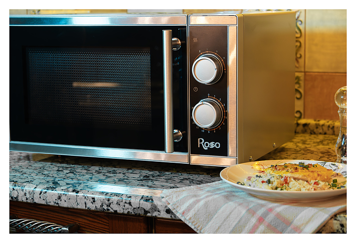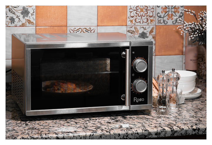 Микроволновая печь Rosso MW9025L предназначена для приготовления, подогрева готовых блюд, а также для размораживания продуктов и полуфабрикатов на предприятиях общественного питания, торговли и в домашних условиях. Для приготовления продуктов лучше всего использовать термостойкую стеклянную или керамическую посуду. Модель оснащена 6 уровнями мощности, таймером обратного отсчета на 30 минут, подсветкой, дверцей с прозрачным стеклом и вращающейся тарелкой. Корпус выполнен из окрашенной стали, внутреннее покрытие - из серой эмали. Дополнительные характеристики: