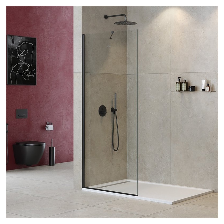 Перегородка душевая CEZARES LIBERTA-L-1-TB-90-C-NERO 90х195 см, стекло прозрачное, профиль черный