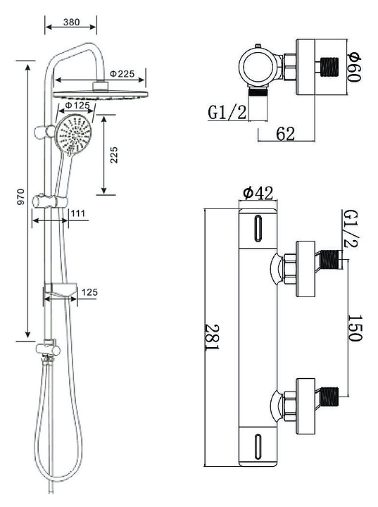 Душевая система с термостатом ORANGE Agger Thermo A2492200 хром