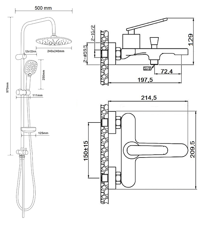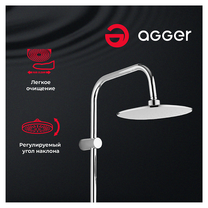 Душевая система ORANGE Agger Beauty A2695000 предназначена для использования в ванных помещениях для подачи горячей и холодной воды. Модель оснащена смесителем для ванны с душем, округлым верхним тропическим душем с регулируемым углом, стойкой, держателем с регулируемой высотой и углом наклона для ручного душа, округлой ручной лейкой с системой защиты от известковых отложений, растягивающимся душевым шлангом в металлической оплётке с защитой от перекручивания и мыльницей. Керамический картридж обеспечивает плавный ход рычага смесителя, контроль и точность при выборе напора и температуры воды, а аэратор создает мягкую ровную струю без разбрызгивания. Изделие выполнено из латуни, отличающейся прочностью, долговечностью и устойчивостью к перепадам температур. Особенности: