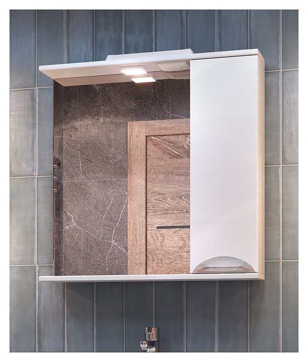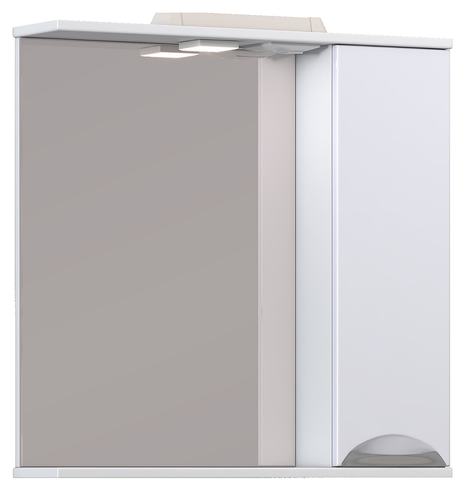 Правостороннее зеркало VIGO Callao 700 от российского бренда дополнит интерьер ванной комнаты. Благодаря подвесной конструкции модель не занимает много места, что экономит пространство и облегчает уборку. Изделие оснащено LED-светильником, включателем с розеткой, шкафчиком с распашной дверцей и доводчиком для плавного закрывания, 2 полками внутри и одной снаружи в нижней части. Корпус и полки выполнены из матовой ЛДСП, фасад - из ЛМДФ в глянцевой пленке ПВХ. Дополнительные характеристики: