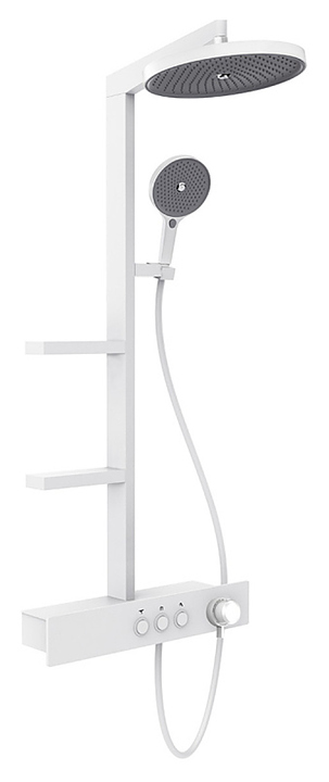 Душевая стойка AQUAme AQM8005W предназначена для использования в ванных помещениях. Модель оснащена круглыми верхним душем и ручной лейкой. Термостатический картридж обеспечивает подачу воды заданной температуры, что исключает ожоги. В комплект поставки входят верхний душ, ручной душ, термостат, штанга и держатель для душа. Особенности: