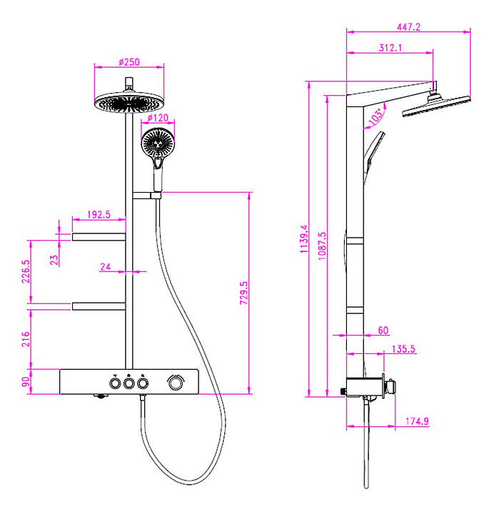 Душевая стойка AQUAme AQM8005B предназначена для использования в ванных помещениях. Модель оснащена круглыми верхним душем и ручной лейкой. Термостатический картридж обеспечивает подачу воды заданной температуры, что исключает ожоги. В комплект поставки входят верхний душ, ручной душ, термостат, штанга и держатель для душа. Особенности: