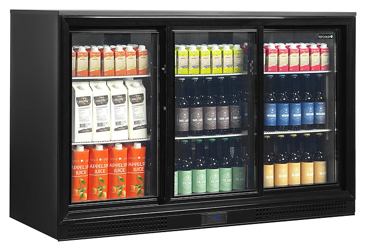Холодильный шкаф TEFCOLD DB301S-3 предназначен для демонстрации, охлаждения и кратковременного хранения алкогольных и безалкогольных напитков на предприятиях общественного питания и торговли. Модель оснащена 3 самозакрывающимися раздвижными дверями, 6 регулируемыми решетчатыми полками и 4 регулируемыми по высоте ножками. Внутренняя обшивка выполнена из рельефного алюминия, двери - из высокопрочного стекла с двойной рамой. Особенности: