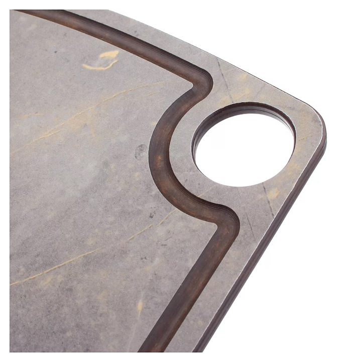 Разделочная доска ComposeEat DRJ29223118OA6 выполнена из бумажного композитного материала, сохраняющего целостность при падении, ударах и механической нагрузке, устойчивого к резким перепадам температур, не подверженному деформации, выцветанию, сколам, трещинам и механическим повреждениям. Модель оснащена желобом для слива жидкости и отверстием для подвешивания. Особенности: