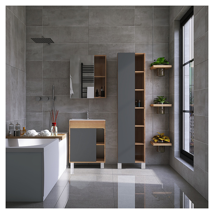 Тумба напольная под раковину VIANT "Бостон" COMO 60 графит, дуб