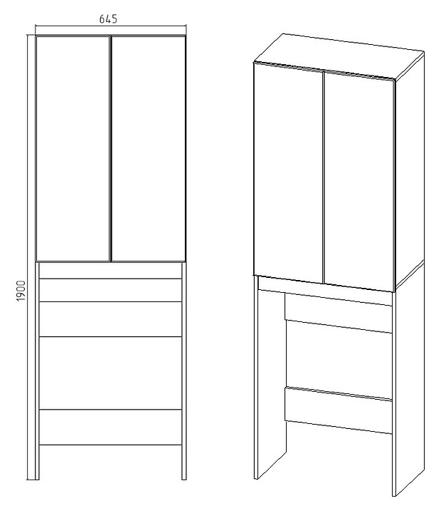 Шкаф-пенал VIANT "Бостон" разборный, для стиральной машины, 64,5х190 см, белый, дуб