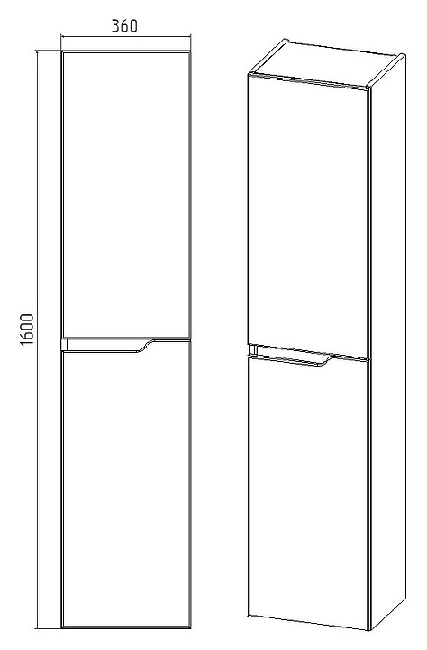Шкаф-пенал подвесной VIANT "Куба" правый 36х160 см, белый