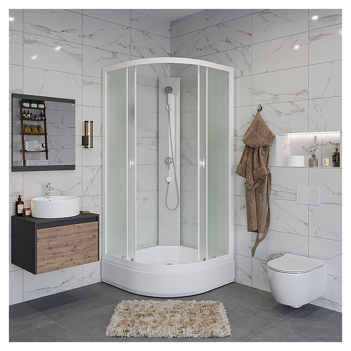 Душевая кабина Niagara Promo P100/26/MT/BK предназначена для использования в ванных комнатах. Благодаря угловой конструкции и поддону в форме четверти круга модель можно вписать даже в ванные комнаты небольшой площади. Модель оснащена 2-секционными раздвижными дверцами с одинарными роликами. Антискользящее покрытие гарантирует комфорт и безопасность во время водных процедур. Профиль выполнен из алюминия, полотно двери - из стекла, поддон, центральная панель, верхний и ручной души - из пластика. Особенности: