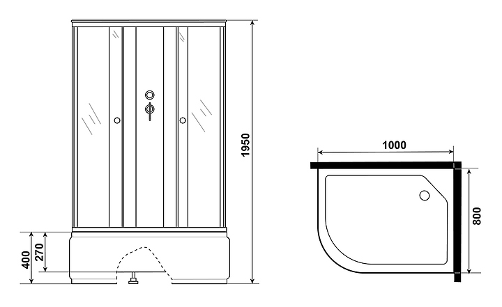 Кабина душевая Niagara Promo P100/80/40R/MT/BK 100х80х195 см, правая