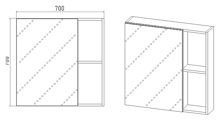 Шкаф зеркальный VIANT "Бостон" 70х70 см, правый/левый, дуб