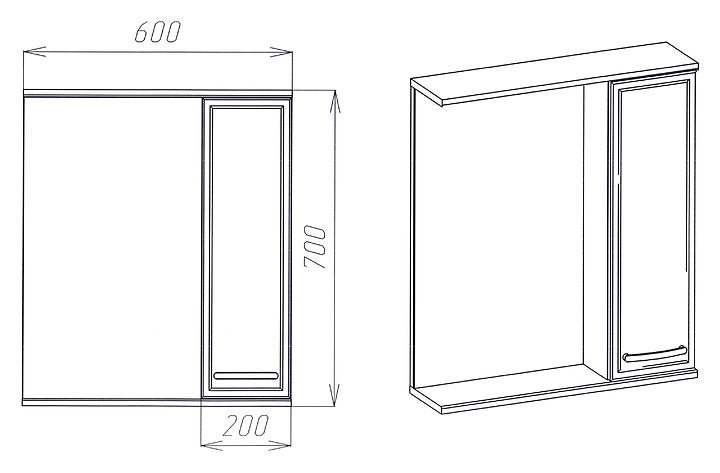 Шкаф зеркальный VIANT "Милан" 60х70 см, правый, белый
