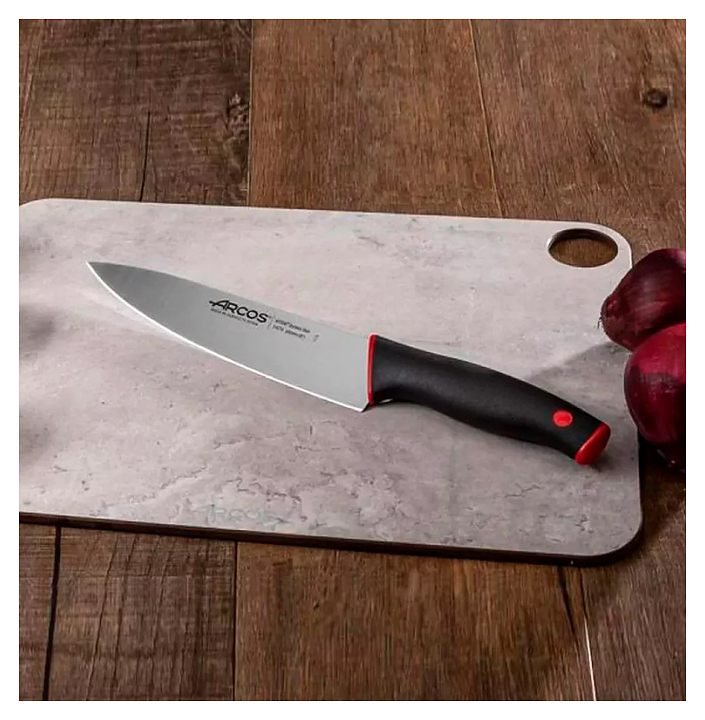 Поварской нож Шеф ARCOS Duo 147422 используется на предприятиях общественного питания и торговли, а также в частных домах и квартирах. Лезвие изготовлено из прокатной молибден-ванадиевой стали NITRUM, эргономичная ручка - из полипропилена. Особенности: