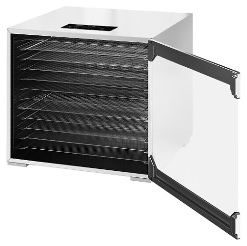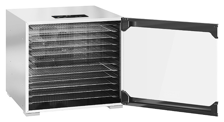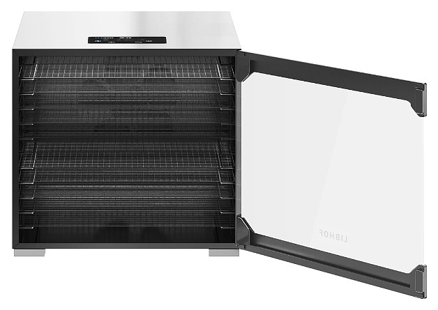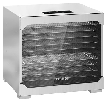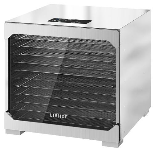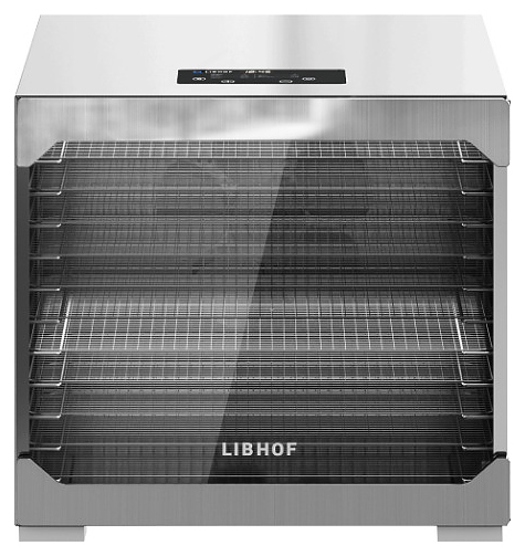 Дегидратор Libhof FDK-12 используется для сушки овощей, фруктов, ягод, грибов и трав, а также вяления рыбы, расстойки теста, приготовления сухариков, пастилы и йогурта в домашних условиях. Модель оснащена камерой с 12 уровнями направляющих для размещения поддонов, расположенными в задней стенке вентилятором и нагревательными элементами, распашной дверью, кабелем питания, расположенным на верхней панели блоком управления с сенсорной клавиатурой и светодиодным цифровым дисплеем. Корпус и поддоны выполнены из высококачественной нержавеющей стали, дверь с прозрачным остеклением. В комплект поставки входят 12 съемных решетчатых поддонов, мелкоячеистая сетка, 6 лотков для пастилы и инструкция по эксплуатации. Особенности: