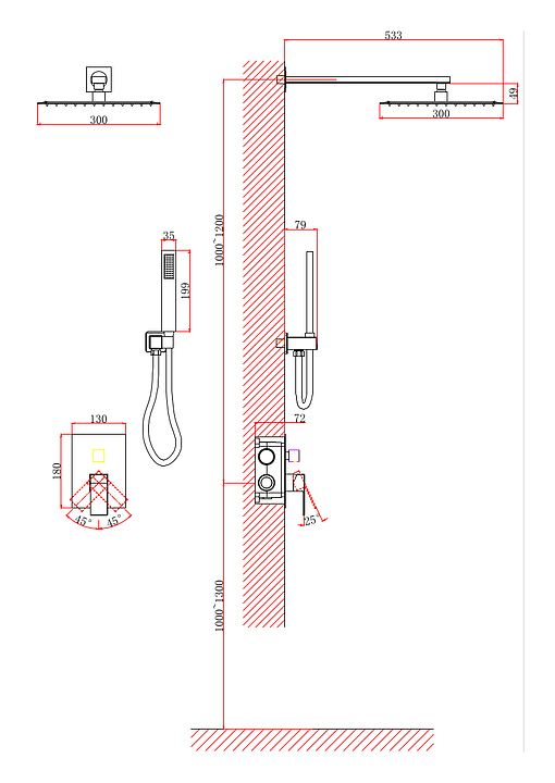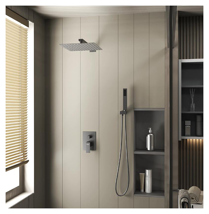 Душевой комплект D&K Bayern.Liszt DA1515706A04 предназначен для использования в ванных помещениях. Серия выполнена в современном стиле. Модель оснащена квадратным верхним душем и ручной лейкой с душевым шлангом, а также керамическим картриджем, обеспечивающим плавный ход рычага смесителя, контроль и точность при выборе напора и температуры воды. Изделие выполнено из высококачественной латуни, отличающейся прочностью, долговечностью и устойчивостью к перепадам температур. В комплект поставки входят смеситель, встраиваемая часть, держатель ручного душа, ручная лейка, держатель верхнего душа, тропический верхний душ и душевой шланг. Дополнительные характеристики: