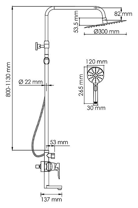 Душевая система со смесителем Wasserkraft A166.116.127.010.CH хром