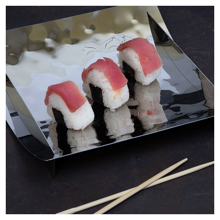 Блюдо Luxstahl Волны 300х300х55 мм предназначено для подачи суши, роллов и других морепродуктов на предприятиях общественного питания, а также в домашних условиях. Модель прямоугольной формы с оригинальным дизайном состоит из дугообразного дна и прямых боковых бортов-опор. Изделие выполнено из высококачественной нержавеющей стали с фактурной поверхностью «волны». Внимание! Информация о товарах, размещенная на сайте, не является публичной офертой, определяемой положениями Части 2 Статьи 437 Гражданского кодекса Российской Федерации. Производители вправе вносить изменения в технические характеристики, внешний вид и комплектацию товаров без предварительного уведомления. Уточняйте характеристики у наших менеджеров перед оформлением заказа. |
